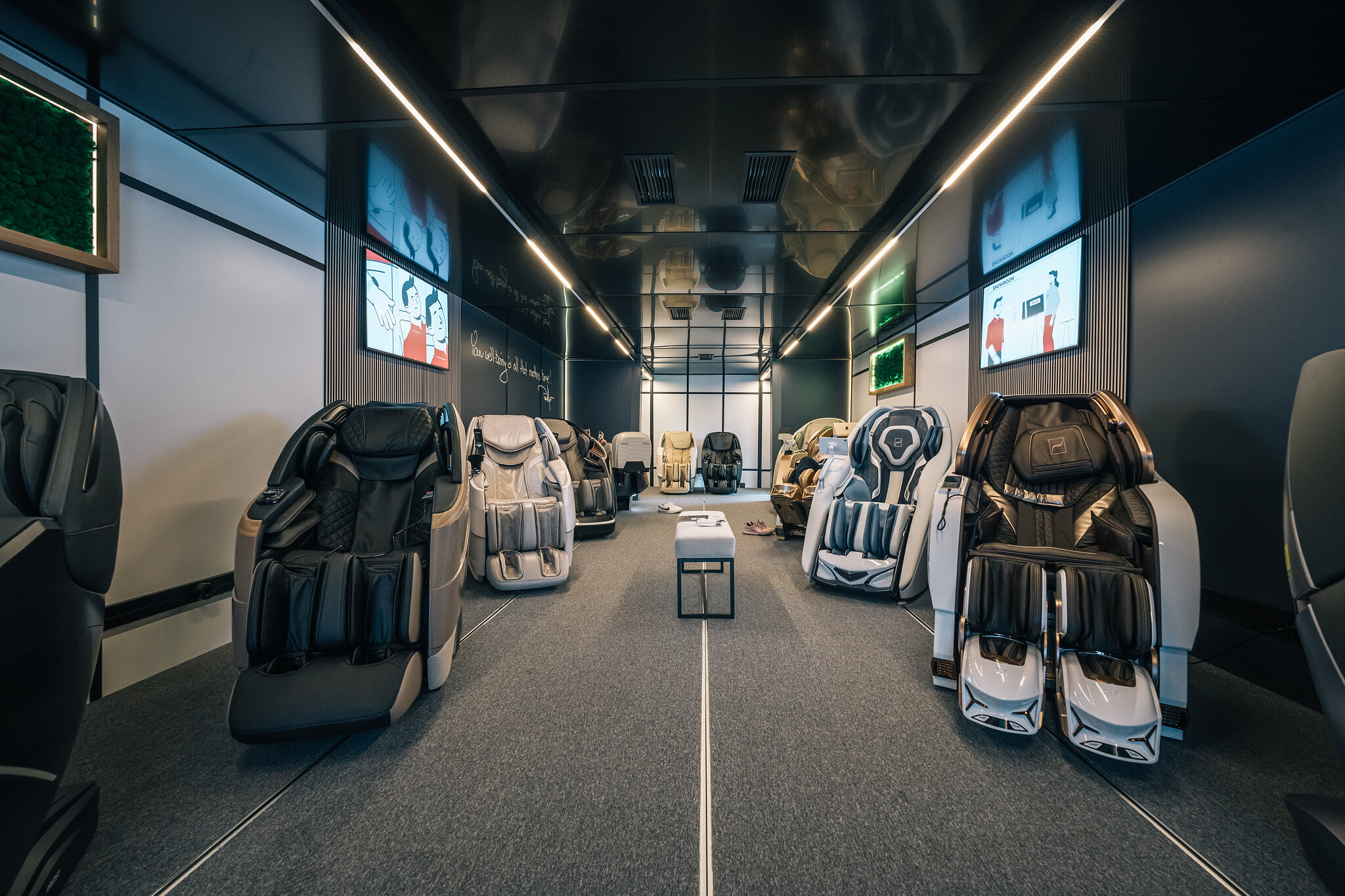 R-ShowRoad is the world’s first mobile, semi-autonomous massage chair showroom. The interior of a specially designed, extendable semi-trailer with an area of 52.1 m² accommodates as many as 12 massage chairs from iRest, Bodyfriend, Fujiiryoki and Massaggio – carefully selected models representing different price ranges and functionalities. A visit to the showroom is by prior booking only. Before your appointment, our Advisor will contact you to arrange the details. During your visit, they will accompany you remotely, providing all the assistance you need to choose the most suitable model, as if they were right there with you. You can place your order and make electronic payments at the showroom. Due to the nature of the showroom, cash payments are not possible.